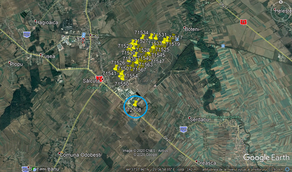 Proprietate imobiliara constituita din Teren Intravilan cu destinatie agricola in cartea funciara (dar utilizare Industriala conform Celei mai bune Utilizari), avand o suprafata de 131.800 mp, cu front stradal dublu (pe colt) de 454 m la DN7 + 271 m la drum lateral (acces catre RTR Titu). Terenul nu este imprejmuit, iar utilitatile nu sunt racordate.